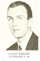 Edited oral history transcript of Gavin Wright, interviewed by Melissa Kemp. 1-part audio.