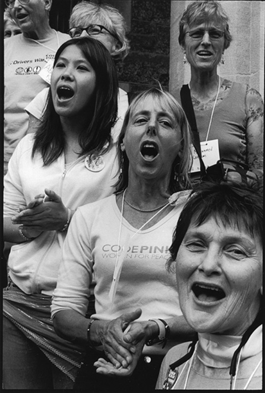 Finkle, Harvey (photographer), “Medea Benjamin (CodePink) and others at demonstration,” Harvey Finkle Photographs, 1970-2015, accessed November 27, 2025, https://ds-exhibits.swarthmore.edu/harvey-finkle/items/show/646.