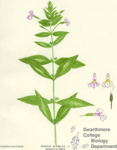 Botanical drawing of genus Mimulus and species ringens