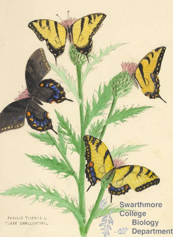 Botanical drawing of genus Papilio and species turnus