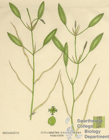 Botanical drawing of genus Potamogeton and species epihydrus