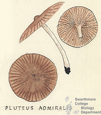 Botanical drawing of genus Pluteus and species amiralis