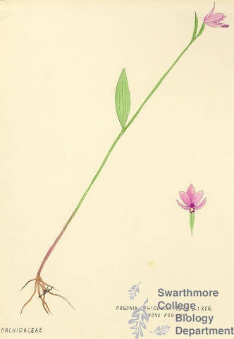 Botanical drawing of genus Pogonia and species ophioglossoides