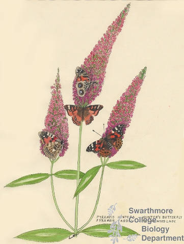 Botanical drawing of genus Pyrameis and species hunteri