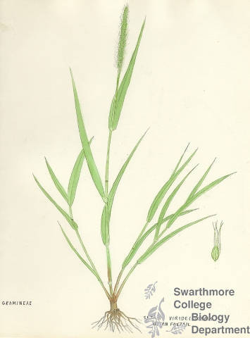 Botanical drawing of genus Setaria and species viridis
