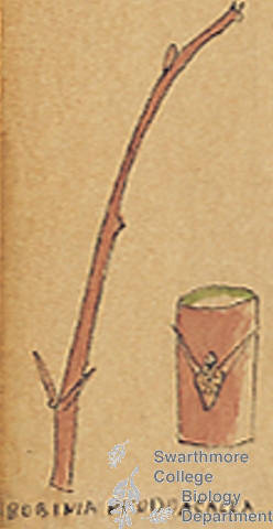 Botanical drawing of genus Robinia and species pseudo-acacia